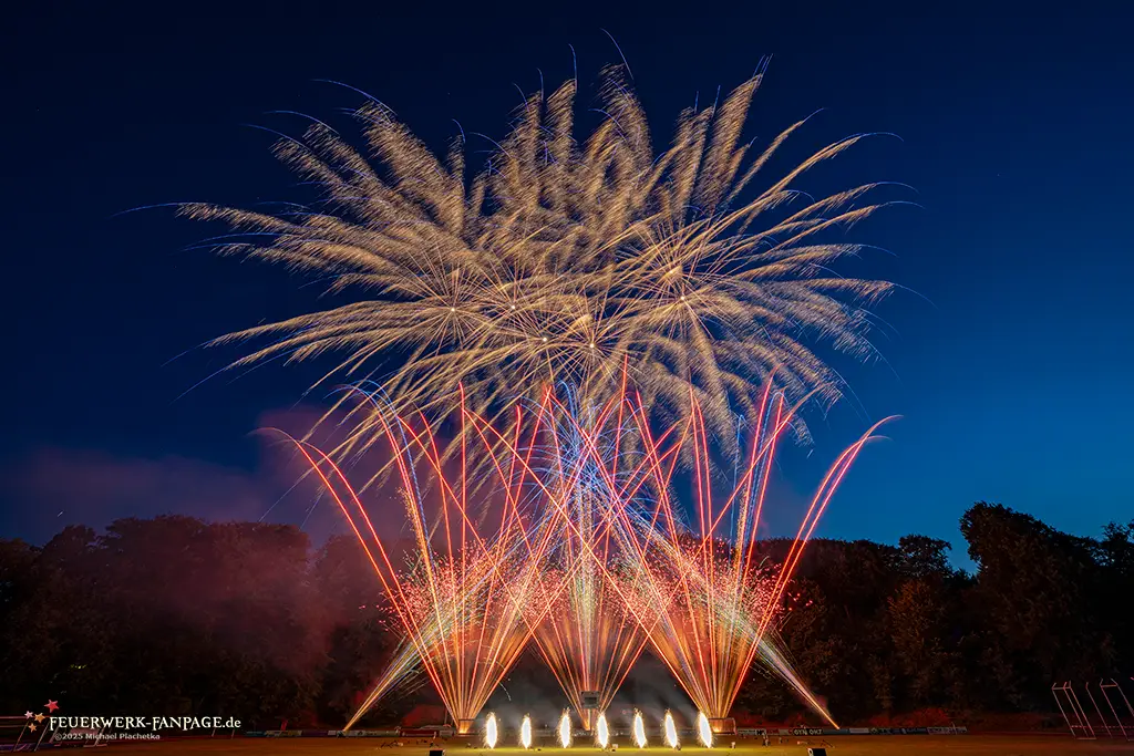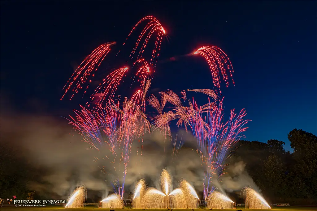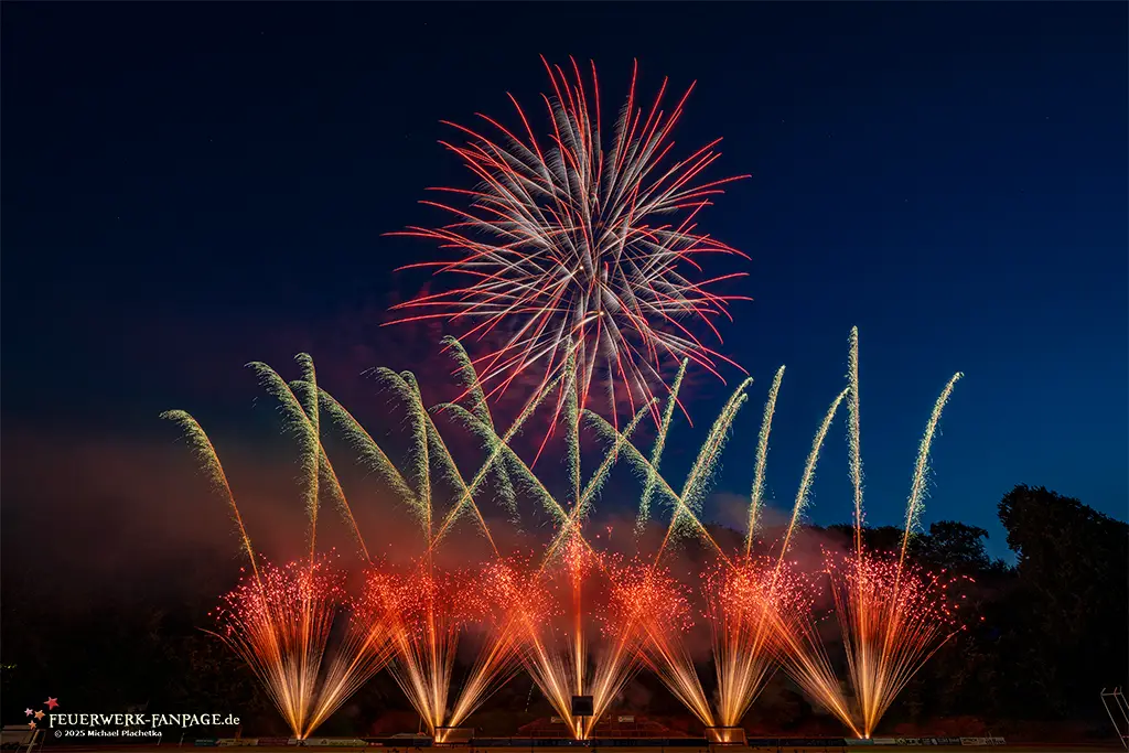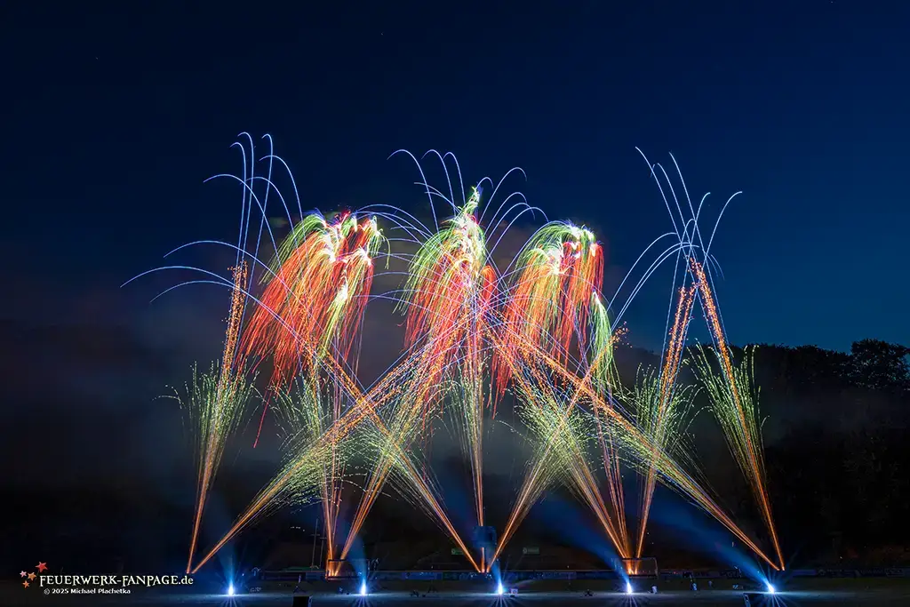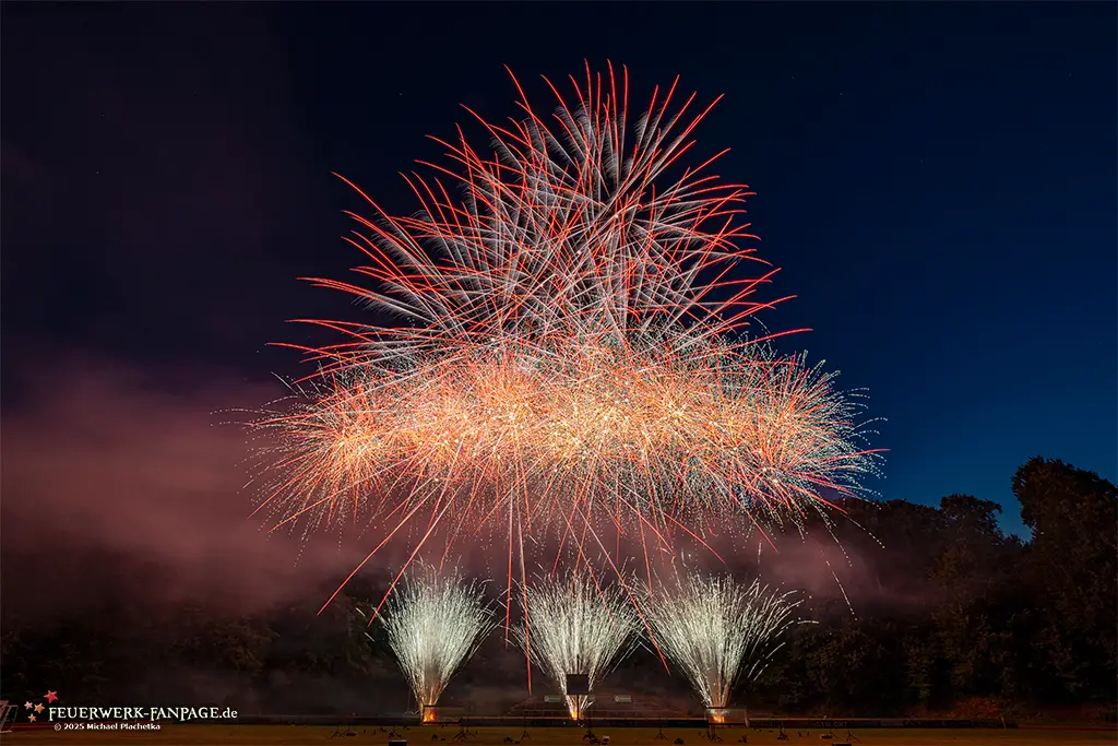 Das abwechslungsreiche Musikfeuerwerk konnte auch in diesem Jahr wieder durch stimmungsvolle Feuerwerksbilder, passend zur Musik und einer tollen Dramaturgie überzeugen. Umgesetzt durch etliche Singleshots, Feuerwerksbomben, Bodenelementen und ausgewählten Cakeboxen.