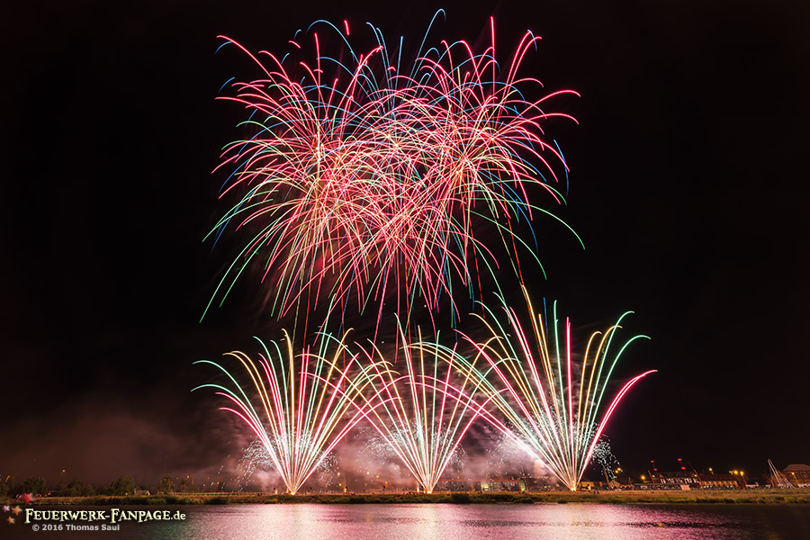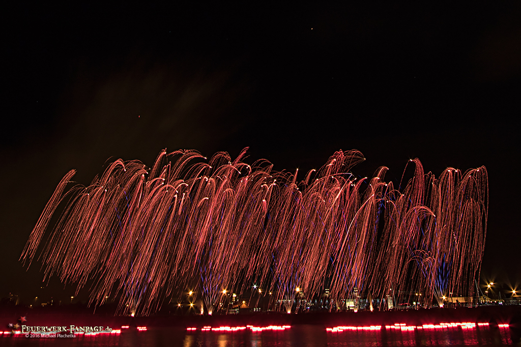 In diesem Jahr mit dabei: Am Freitag, dem 12.08.2016 – DaNang Fireworks Team aus Vietnam und SUGYP aus der Schweiz. Am Sonnabend, dem 13.08.2016 präsentierte Göteborgs FyrverkeriFabrik ihre Show. Den Abschluss bildete wie jedes Jahr die polnische Firma SUREX, allerdings außerhalb der Wertung. Da der Wetterbericht am Freitag Regenschauer prophezeite, überlegten wir, ob man unter solchen Bedingungen das Risiko auf sich nehmen sollte für die lange Autofahrt nach Szczecin. Wir entschieden uns dagegen, weil es bei Regen nicht möglich ist, vernünftige Aufnahmen zu machen. Die Entscheidung stellte sich als richtig heraus, denn es regnete während des Feuerwerkes von DaNang und es entstand viel Rauch. Also gibt es von uns nur einen Bericht für Sonnabend.Hier passte das Wetter. Göteborgs FyrverkeriFabrik lieferte eine fantastische Show ab. Das Feuerwerk war absolut gut geplant und stimmig. Gefallen hat uns die farbliche Gestaltung. Es wurden vornehmlich in jeder Sequenz zueinander passende Farben geschossen. Wir finden, dass sich dieses Feuerwerk von anderen, die man so gesehen hat, erheblich unterschied. Viel wild durcheinander geschossene Farben, wie man sie oftmals präsentiert bekommt, machen einen unruhigen Gesamteindruck. Hier hatte man einen anderen Ansatz gewählt, und das war wirklich perfekt. Wir ziehen den Hut vor Martin Hildeberg, der das Gesamtkonzept erstellt hat. Ein großes Lob von uns für die geleistete Arbeit.SUREX mit Heimatfaktor sowie Organisator und Sponsor der Pyromagic gab das Abschlussfeuerwerk. Dieses konnte sich wie jedes Jahr zur Pyromagic sehen lassen und zeigt die Professionalität dieser Firma.