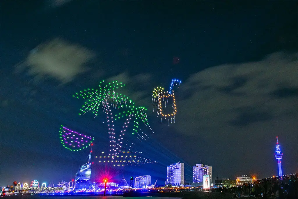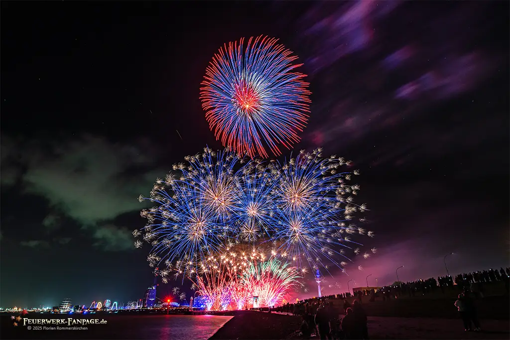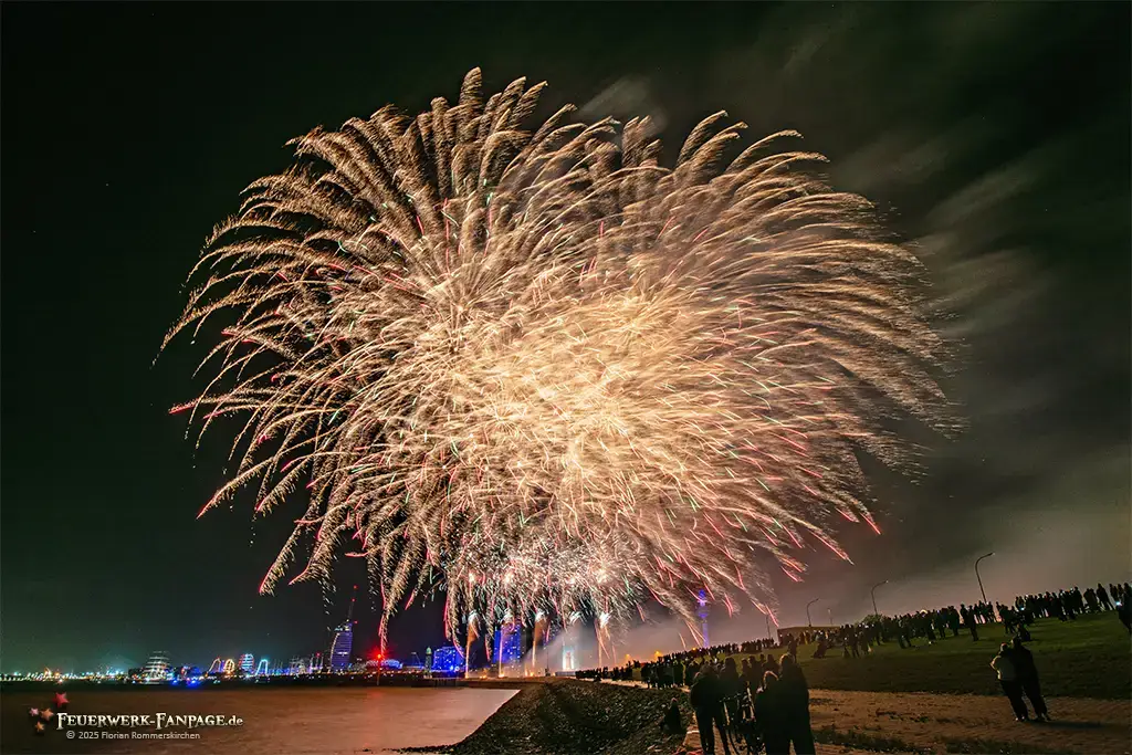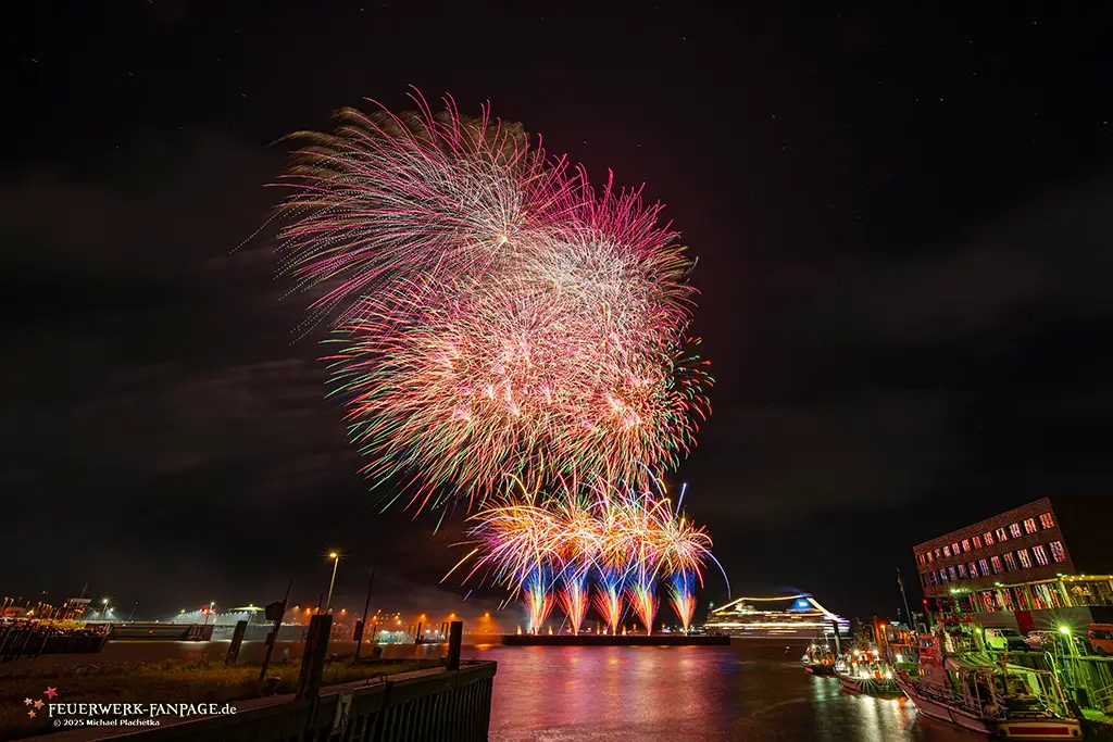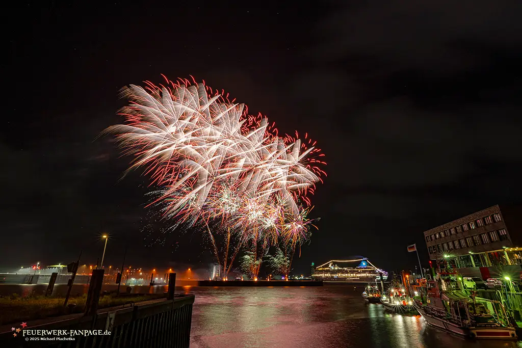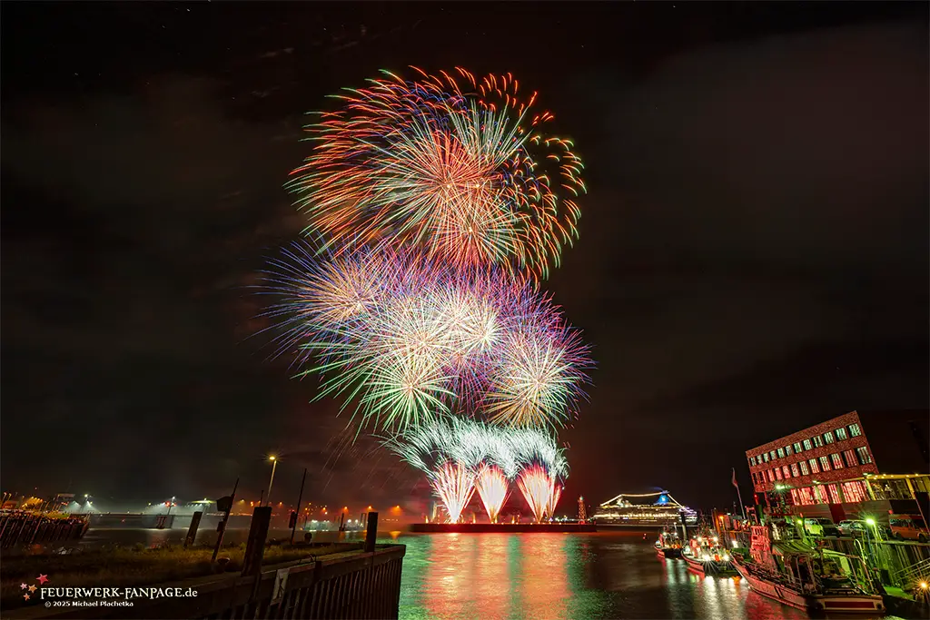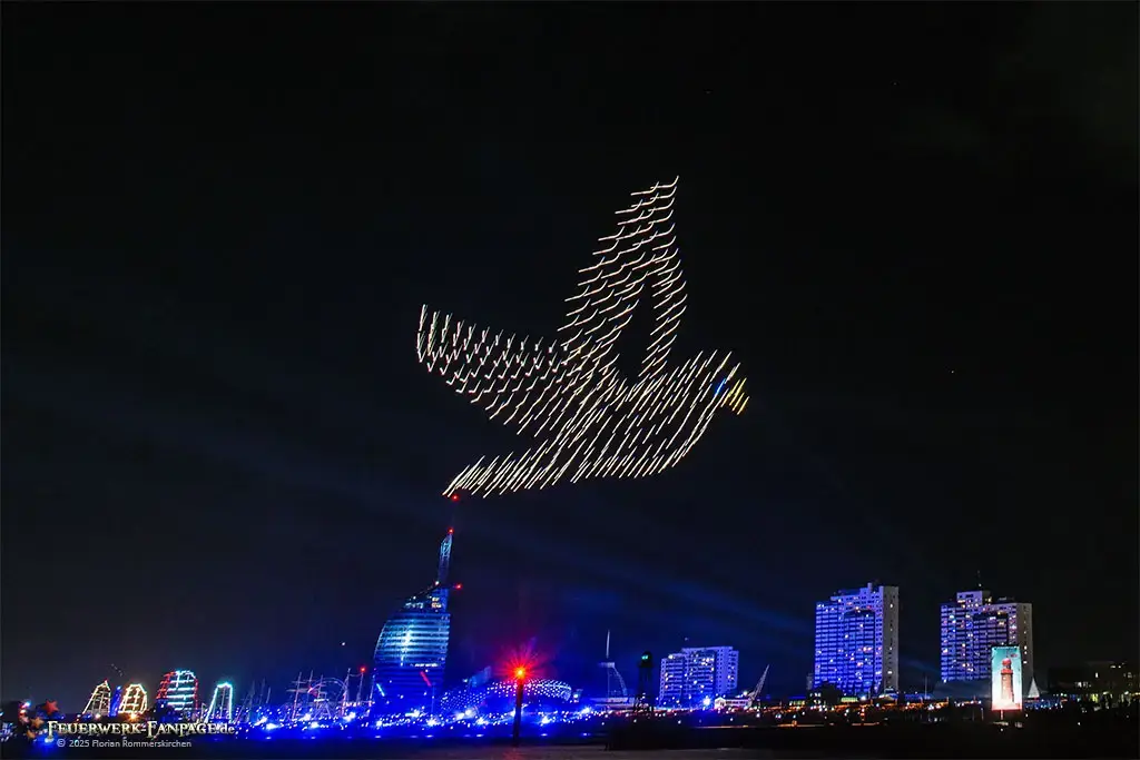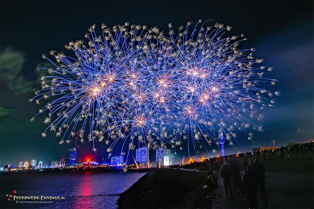 Aufgrund einer Coronapause fand nun nach 10 Jahren endlich wieder die SAIL – eine der größten Windjammertreffen Europas – im Hafen von Bremerhaven vom 13. bis 17. August 2025 statt. Natürlich darf dabei als einer der krönenden Höhepunkte ein großes Musikfeuerwerk am SAIL-Samstag nicht fehlen. Und was für ein Feuerwerk wurde von den Pyrotechniker für die COMET Feuerwerk GmbH geboten. Abwechselnde Effekte in mehreren Etagen und ein grandioses Finale wurden von der Liebesinsel aus in den Bremerhavener Nachthimmel geschossen. Vorher gab es jedoch noch eine imposante Drohnen- und Lichtershow, die dieses absolute Highlight der SAIL 2025 perfekt einleitete. Neben zigtausenden Besuchern auf der Weserpromenade in bremerhaven wurde das Spektakel auch von viele großen und kleinen, alten und neuen Schiffen vom Wasser aus beobachtet.