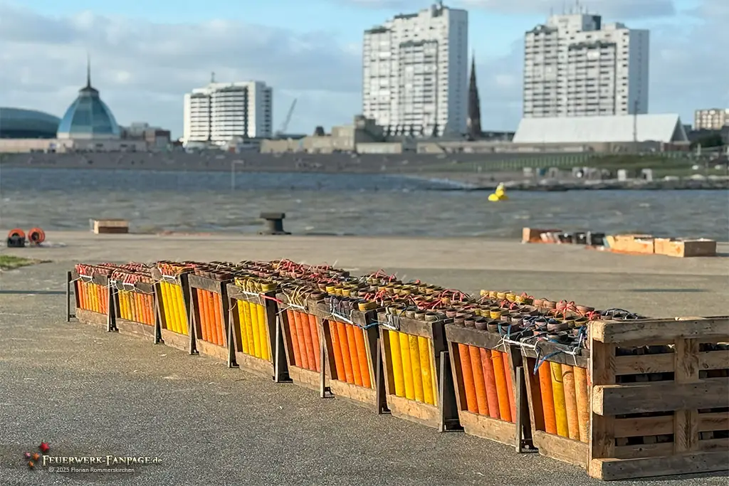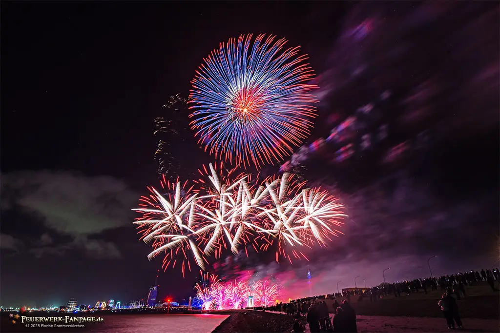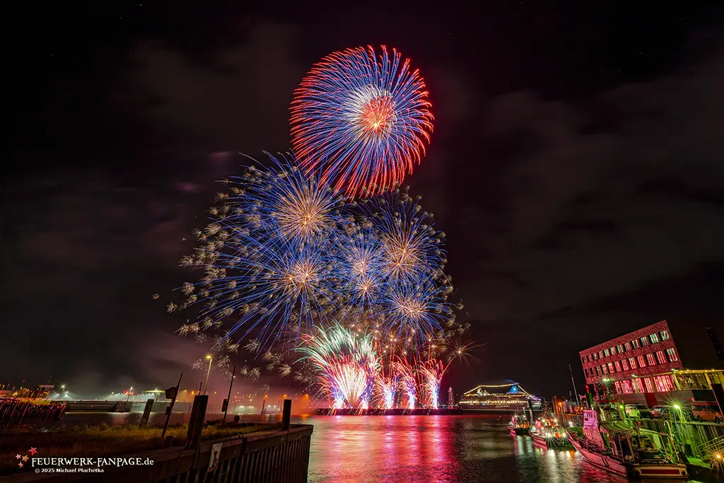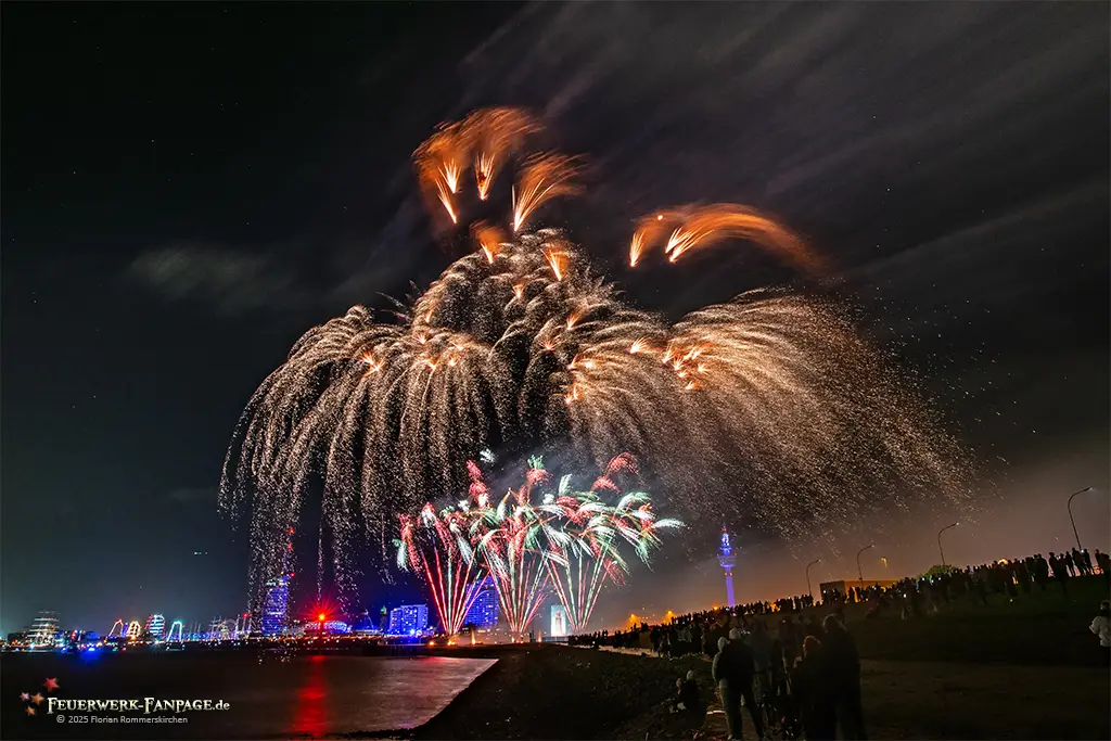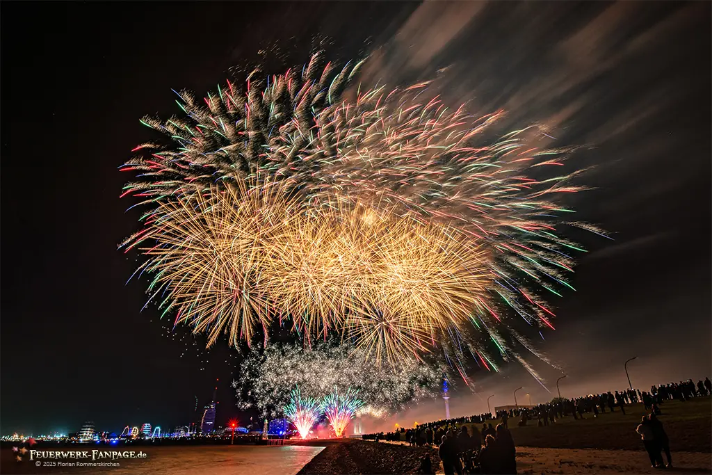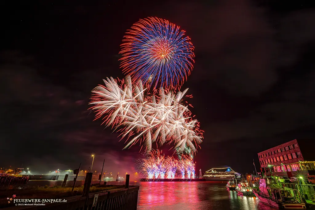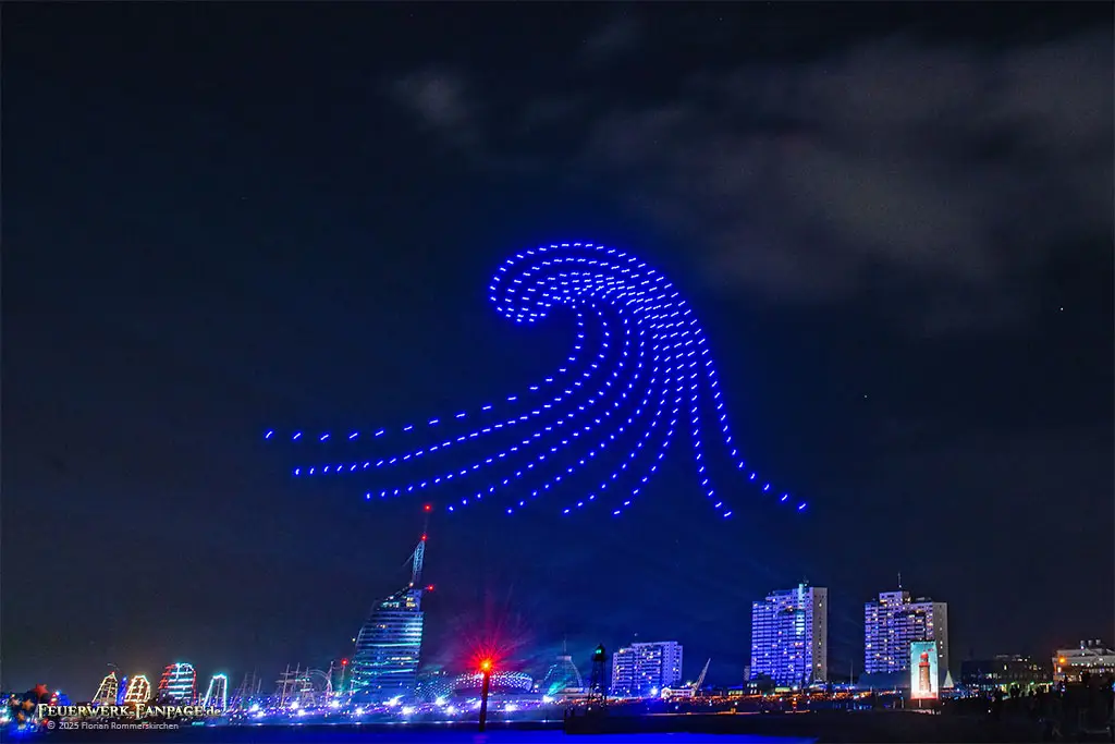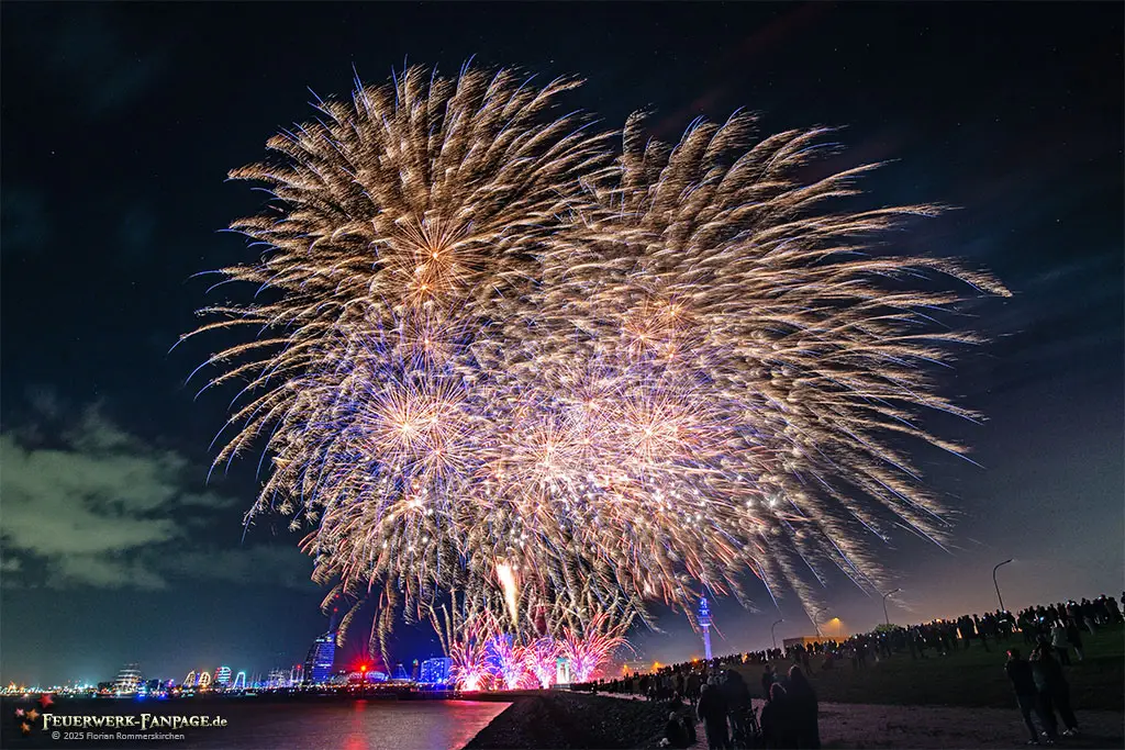 Aufgrund einer Coronapause fand nun nach 10 Jahren endlich wieder die SAIL – eine der größten Windjammertreffen Europas – im Hafen von Bremerhaven vom 13. bis 17. August 2025 statt. Natürlich darf dabei als einer der krönenden Höhepunkte ein großes Musikfeuerwerk am SAIL-Samstag nicht fehlen. Und was für ein Feuerwerk wurde von den Pyrotechniker für die COMET Feuerwerk GmbH geboten. Abwechselnde Effekte in mehreren Etagen und ein grandioses Finale wurden von der Liebesinsel aus in den Bremerhavener Nachthimmel geschossen. Vorher gab es jedoch noch eine imposante Drohnen- und Lichtershow, die dieses absolute Highlight der SAIL 2025 perfekt einleitete. Neben zigtausenden Besuchern auf der Weserpromenade in bremerhaven wurde das Spektakel auch von viele großen und kleinen, alten und neuen Schiffen vom Wasser aus beobachtet.