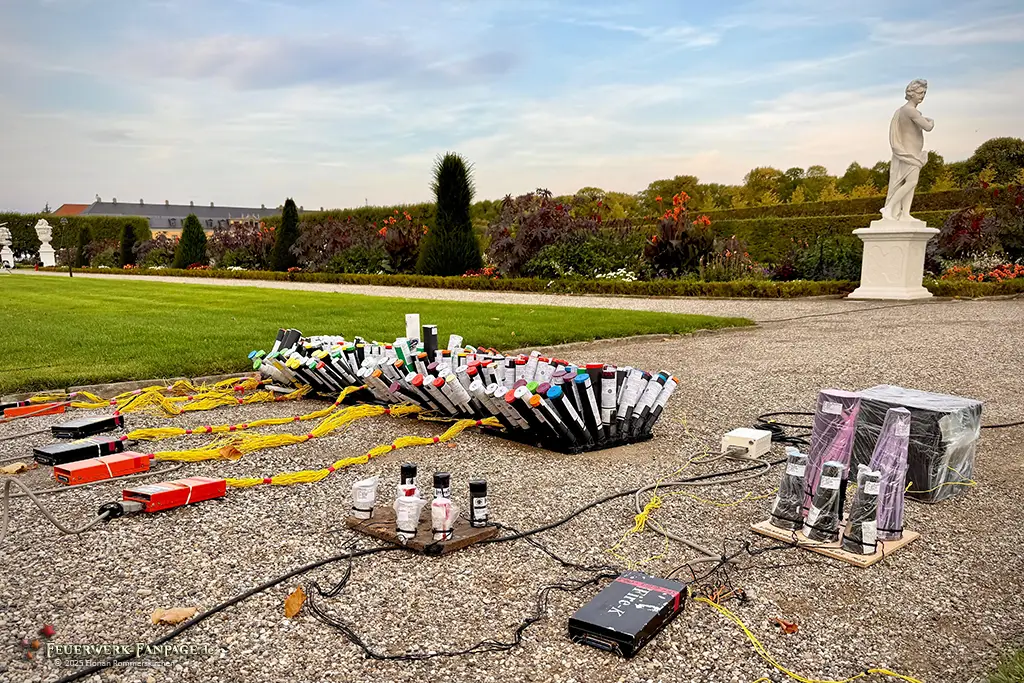Das Wetter zeigte sich nochmal am letzten Sommertag des Jahres von der sonnig-warmen Seite. So konnten die Kleinkunstwerke und Aktionen in den Herrenhäuser Gärten von Hannover zur Verkürzung der Wartezeit bis zum großen Musikfeuerwerk des Teams “England” beitragen. Die Show startete schon spektakulär um 21 Uhr mit dem Pflichteil und hervorragenden Showelementen. So waren auch eher für englische Feuerwerke untypische aber traumhaft schöne Feuerräderinstallationen im Garten aufgebaut. Aber auch die Choreographie passte perfekt zur Musik. Die nachfolgende Kür stand dem in nichts nach und steigerte die Spannung bis zum Schluss. Leider stand der schwache Wind ungünstig für das Publikum und medialen Aufzeichnungen, so dass der Rauch leider die traumhaft schönen und wohl durchdachten Feuerwerkschroreographien verdeckte. Daher sind leider auch nur sehr wenige einigermaßnen brauchbare Fotos während der Show entstanden.